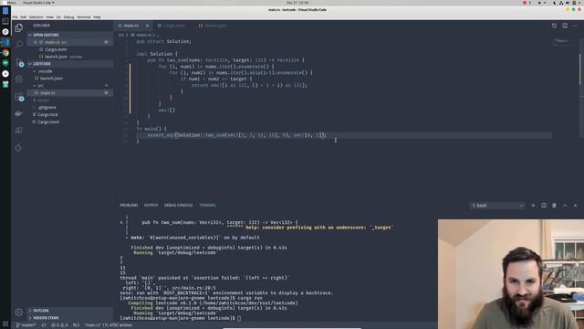The two sum leetcode problem solved in Rust