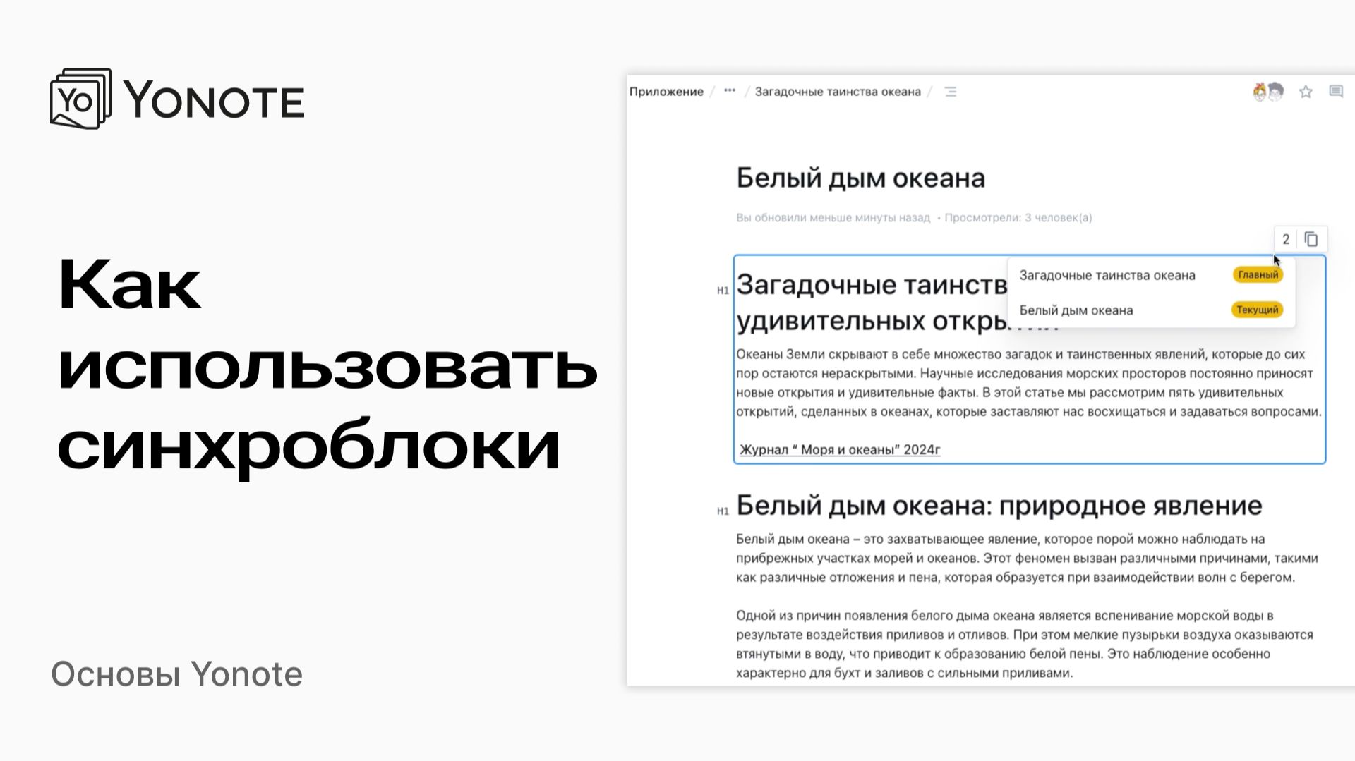 В этом видео мы расскажем о синхроблоках и особенностях работы с ними в Yonote