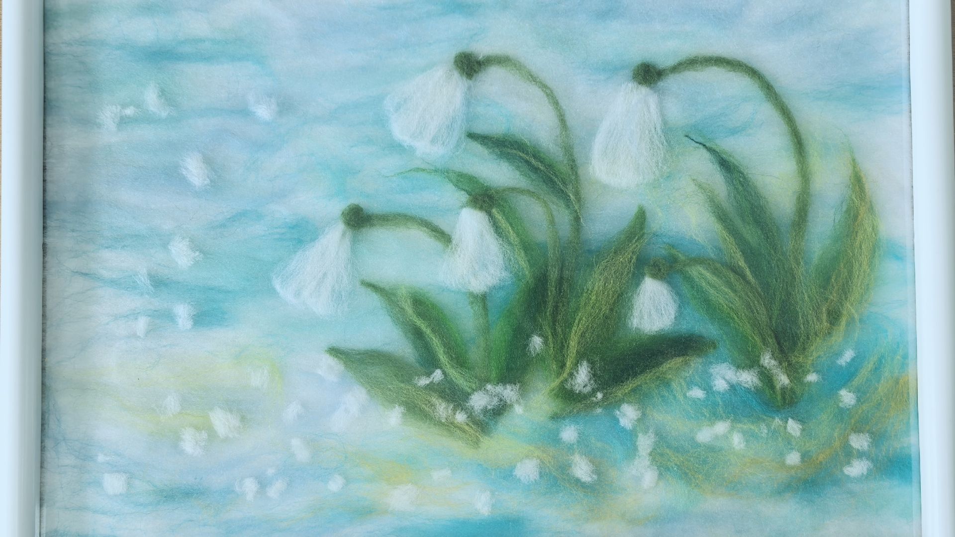 Библиотека им. П. Васильева представляет мастер-класс "Первые подснежники". Картина выполнена в технике "шерстяная акварель".