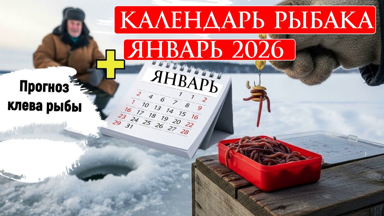 Календарь рыбака на Январь 2026 Прогноз клева рыбы Лунный календарь рыболова Январь 2026