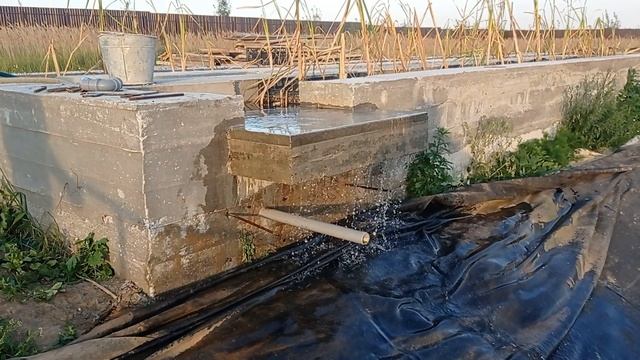 Забетонировали ручей будущего био плато, бросили в пруд насос- пробуем, как будет стекать вода