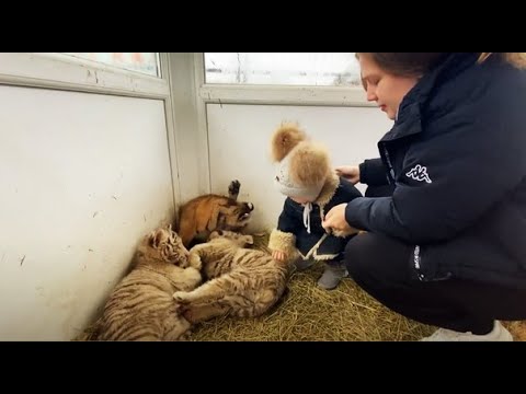 Ангелина пришла в ЗИМНИЙ ДОМИК ТИГРЯТ ! Песенка для малышей !