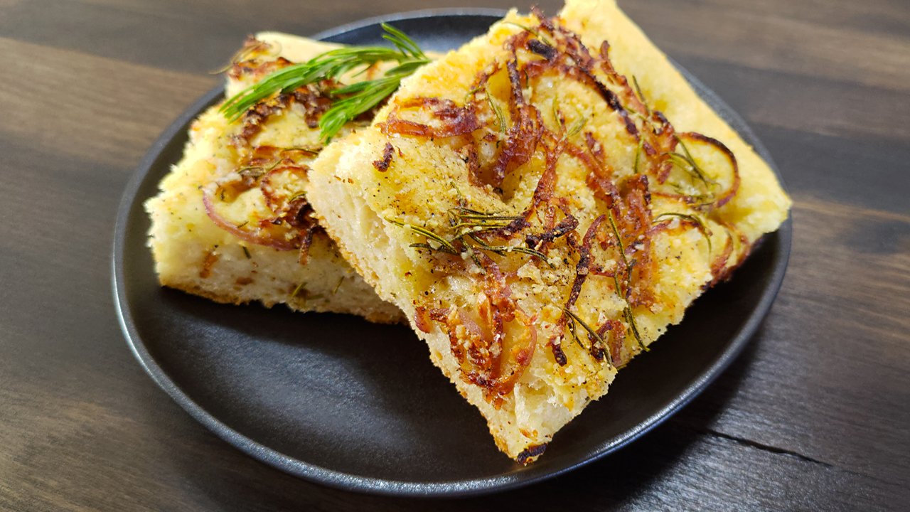 Фоккача с луком и розмарином. Итальянская кухня.