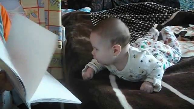 Виолетта, 3,5 мес.читает листалки из Букваря с пеленок