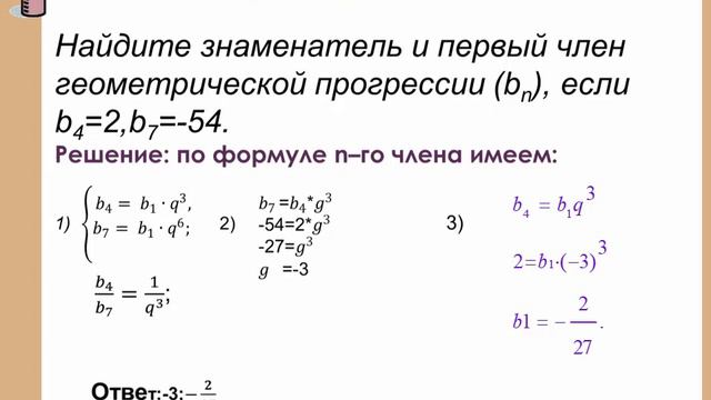 Видеоурок. Геометрическая прогрессия 9 класс.