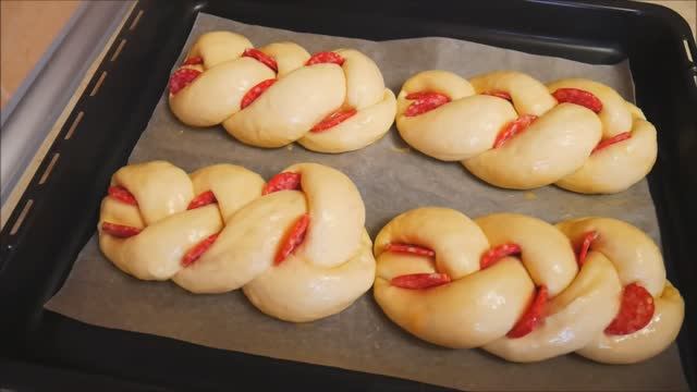 Булочки на ЗАВТРАК, к ЧАЮ ,на ПЕРЕРЫВ БУЛОЧКИ с САЛЯМИ и МОЦАРЕЛЛОЙ БУЛОЧКИ рецепт ТЕСТО булочки