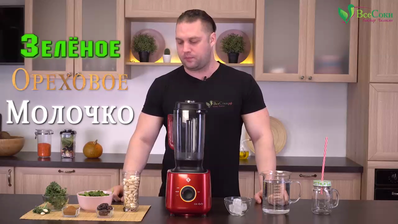 Зелёное миндальное молочко – звучит необычно, правда? Этот вкусный и полезный напиток на основе миндаля и кейла пользуется большой популярностью на западе, а теперь завоевал и наши сердца. Надеемся, что Вы сможете по достоинству оценить этот быстрый рецепт для блендера! Ингредиенты: 1) Замоченный миндаль – 1 стакан; 2) Финики (без косточек) – 4 шт.; 3) Шпинат – 1 горсть; 4) Кейл – 2 горсти; 5) Вода – 3 стакана; 7) Корица – 1/2 ч. л.; 8) Лёд – 5–6 кубиков. Поместите все ингредиенты в чашу блендера и смешивайте на максимальной скорости. Обязательно удалите косточки из фиников. Всего за 1 минуту они превратятся в густой и воздушный однородный напиток невероятно красивого цвета. Приятного аппетита! Видеоролик от 25.12.2018 Зелёное молоко приготовлено в профессиональном кухонном блендере BS5 Cube Ruby южнокорейской фирмы L'equip. Это дизайнерская вариация мощного стационарного блендера из лимитированной коллекции: в неё входят модели Ruby (Рубиновый) и Sapphire (Сапфировый). Эксклюзивный рубиновый блендер L'equip BS5: http://vsesoki.ru/product/professionalnyy-blender-lequip-bs5-cube-ruby-rubinovyy?rtube Эксклюзивный сапфировый блендер L'equip BS5: http://vsesoki.ru/product/professionalnyy-blender-lequip-bs5-cube-sapfirovyy?rtube Белый блендер L'equip BS5: http://vsesoki.ru/product/professionalnyy-blender-lequip-bs5?rtube Чёрный блендер L'equip BS5: http://vsesoki.ru/collection/lequip-3/product/professionalnyy-blender-lequip-bs5-cube-chyornyy?rtube http://vsesoki.ru?rtube – ООО «Все Соки», официальный импортёр и российский дистрибьютор техники бренда L'equip и других производителей из Южной Кореи, Европы и США. ☎ Заказать блендер с бесплатной доставкой по России и оплатой при получении: +7 (495) 134-11-44 в Москве +7 (812) 389-33-66 в Санкт-Петербурге ⠀8 (800) 3333-627 и по всей России (звонок бесплатный!) Сюрприз для подписчиков! Подпишитесь на наш канал https://rutube.ru/video/person/1735077 и при оформлении заказа на сайте «Все Соки» используйте секретное слово РУТУБ. Наглядная инструкция по использованию кодового слова: https://clck.ru/EtNNi