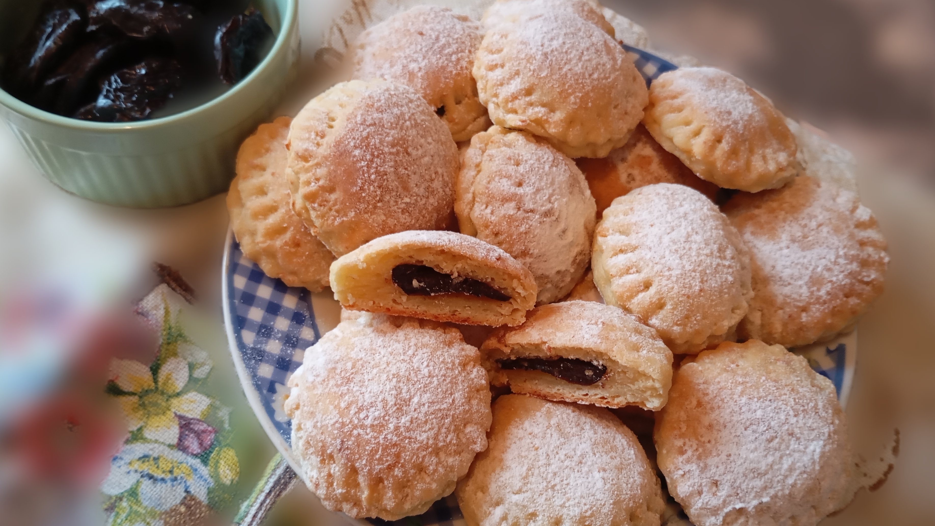 Ингредиенты: творог 5% - 200 гр. мука пшеничная - 170 - 200 гр. яйцо - 1 шт. масло сливочное (растопить) - 70 гр. сахар заменитель - 1 ч.л. разрыхлитель - 1 ч.л. ванилин - 1 ч.л. чернослив - 150 - 200 гр. сахарная пудра для украшения - 10 гр. Выпекать при температуре 180 градусов, 30 минут потом остудить печенье и сверху посыпать сахарной пудрой. Всем желаю приятного чаепития, дорогие мои друзья!🙋🫖☕🍪 Готового изделия у меня получилось 18 шт., диаметр вырубки для печенья 6 - 7 см.