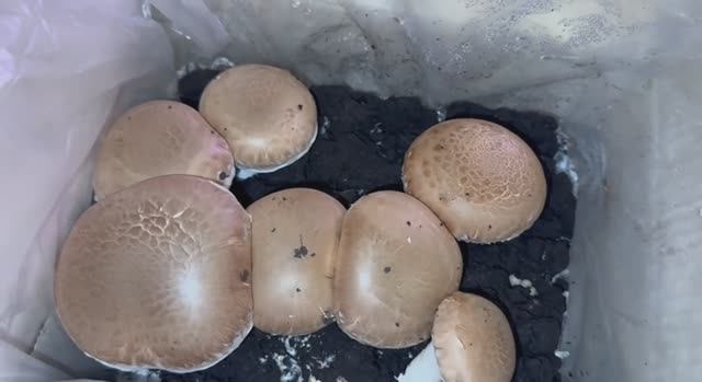 У Любаши первый урожай грибочков - королевские шампиньоны.