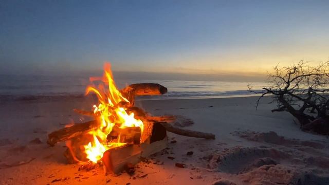 Костер на пляже. Расслабляющая музыка прибоя и треска дров.