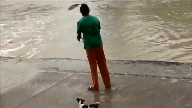 Женщина отпугнула крокодила с помощью шлёпанца