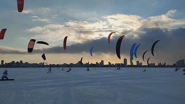 Соревнования по сноукайтингу на Верх-Исетском пруду