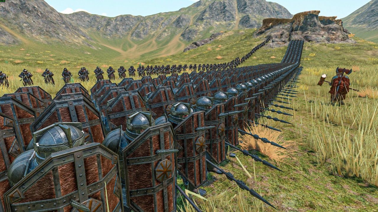 #битва #игры #видиоигры #играть В Mount & Blade II: Bannerlord (мод LOTR) 1000 дварфов занимают оборонительную позицию, в то время как эльфийские армии продвигаются вперед, чтобы прорвать их оборону.