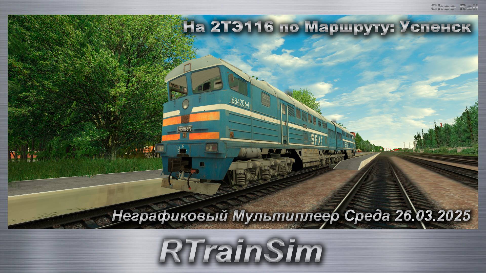 RTrainSim На 2ТЭ116 по Маршруту: Успенск Неграфиковый Мультиплеер Среда 26.03.2025 ========================================================================== Если вы хотите поддержать развитие канала: https://new.donatepay.ru/@1236676 ========================================================================== Хотите скачать сборку, и принять участие в Мультиплеере. Регистрируемся на сайте: https://madadev.site/ Сценарии для RTrainSim(а) можно скачать в Дискорд группе Сценарии RTrainSim MDD https://discord.com/invite/kdZ7W5thEm Анонсы моих трансляций в ВК https://vk.com/id484755643 Наш Телеграм https://t.me/cheerail Наш Дзен https://dzen.ru/cheerail?share_to=link
