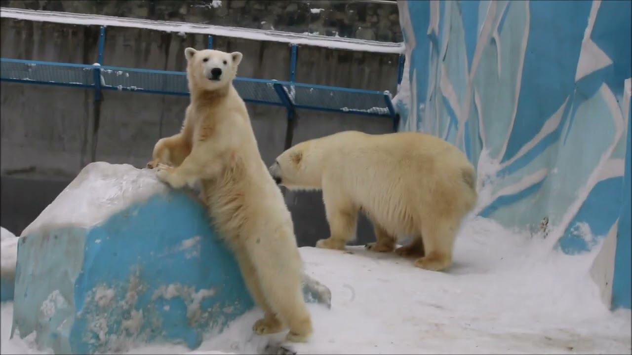 Герда родилась в Москве 20 ноября 2007 года. Её мама Симона, папа Врангель. В Новосибирск переехала 05.08.2008. В 2013 году у Герды и Кая родилась Шилка. В 2015 году она переехала в Японию. В 2015 году родился Ростик. 6 декабря 2018 года он переехал в Китай. В 2018 году родились Норди и Шайна. Данная пара молодых медведей находилась вне экспозиции зоопарка, поэтому посетители не могли их видеть. Передача молодых медведей в другой зоопарк не планируется, — ответили на запрос редакции в пресс-центре мэрии Новосибирска. Но Шайна 20 января 2024 года переехала в Ижевский зоопарк. Белые медведи одиночные животные. Как правило, миролюбивы по отношению друг к другу, но между самцами в брачный период случаются стычки. Взрослые самцы могут нападать на медвежат. Гон с марта по июнь. Продолжительность жизни — максимум 25—30 лет; в неволе рекорд долгожительства — 42 года. Вес очень крупных самцов в некоторых частях ареала 700 и даже 800 кг: есть данные о зверях весом до 1000 кг. Обычно вес меньше. Самки всегда не только меньше, но и значительно легче самцов. Так, самцы в восточной Гренландии в состоянии нормальной упитанности весят 400—450 кг, хорошо упитанные — до 500 кг, самки, даже очень сытые, здесь же редко весят больше 350—380 кг, т. е. их вес составляет около 75% веса самцов. Длина тела на 3-й день после рождения 28—32 см, средний вес — около 755 г (650—840 г). На 26-й день длина тела увеличивается незначительно — до 35—38 см, а вес возрастает до 1125—1275 г. В возрасте 60 дней самцы весят около 7 кг, самки — около 6 кг при длине тела у первых 58—60 см, у вторых 54—58 см. В возрасте 4 месяца медвежата достигают веса 22—23 кг, в 6-месячном возрасте при длине около 110 см — 40—43 кг, в 8-месячном — 58—62 кг. Длина тела в возрасте с 6 до 9 месяцев нарастает по 6—7 см в месяц. Во время зимнего сна рост почти прекращается. В зоопарке медведей кормят утром морской рыбой, хлеб с рыбьим жиром внутри, морковь, яблоки, морская капуста, яйцо дают сырое. Медвежат подкармливают молоком из соски. На ужин мясо (говядина, конина, куры или индейка). Летом и осенью арбузы, дыни, ранетки, кабачки, тыквы, огурцы. Когда показательное кормление летом бросают живую рыбу. Медвежата с медведицей находятся до 2-х лет. 16 декабря 2022 года Герда родила 2-х медвежат. И это две девочки! Имена дали 25 июня. Медвежат зовут Стрелка и Белка. Обзор вольеров белых медведей https://www.youtube.com/watch?v=mAt_b7JD0B4&list=PLGvf0V-rAHxkpGKJaWIZIUxRKgKiqV3xZ&index=17&t=0s