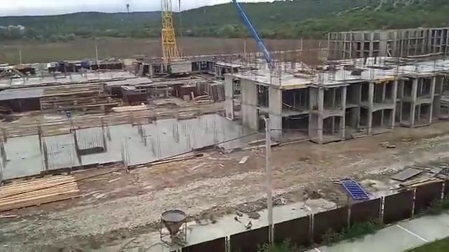 Строительство 2 очереди ЖК Holiday House с балкона дома 11 корпус 1 по улице Мирная в Сукко