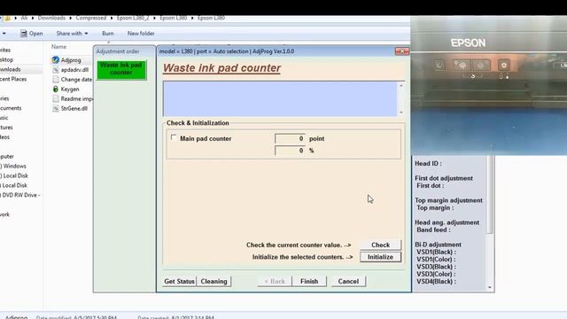 Reset Epson L382 printer with Epson adjustment program