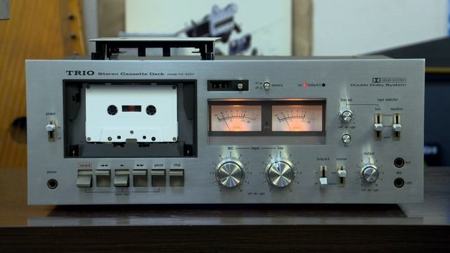 TRIO KX-9000 редкая, шикарная дека с очень красивым звучанием, три аудио головки, сквозной канал, регулируемое подмагничивание, встроенный генератор тест сигнала. Съёмный подкассетник. Система Dolby. 1977 год. Проверка деки на запись и одновременное воспроизведение. Очень красивая, высококачественная, высококлассная, топовая кассетная дека. В современном мире это уже огромная редкость, так сказать "допотопное" прошлое. Но какую радость доставляет пользование этой декой, особенно в эпоху цифровых технологий, когда звук, звучание стало цифровым повсеместно, когда усилители уже везде цифровые (а они априори не могут давать полноценного звучания, создаётся иллюзия высокого разрешения, но мы слышим только вершки звуков, при этом и звук всегда рыхлый, да схемы эффективные, но для музыки не годные), а тут - аналог, и всё бы то ни было, но когда ты слышишь звук с обычной аналоговой кассеты богаче и информативнее чем на это способны цифровые устройста, невольно задумываешься, а куда мы навострились, и до чего дошли. Да, цифровые технологии экономят ресурсы нашей земли (планеты), но и мы пользуясь цифровыми технологиями, деградируем, деградирует слуховое восприятие. Встретить человека с хорошо воспитанным слухом большая удача, таких в наше время становиться всё меньше и меньше. Да, кассета это шумы, но какой смысл слушать музыку когда большая часть звуковой информации отсутствует, цифровые технологии просто не позволяют воспроизводить тончайшие, тихие звуковые моменты, и и мы к этому привыкаем, здесь ещё и уровень развития инженеров конечно же привносят свои нюансы, ну и коммерческая составляющая не в стороне. А тут, включаешь старенькую кассетную деку, ставишь аналоговою запись. И осознаёшь, что всё к чему мы пришли - это печально, но тебя это обошло стороной. Это как было с катушечниками в 80-е годы. Если кто помнит приход CD формата, когда чистейший звук, но без какой либо информации, если катушечник звучит (тогда все записи были аналоговые), а CD - даёт мёртвый звук, это при том, что тогда, первые CD деки были весьма высокого качества, на хороших, дорогих комплектующих, в сравнение с современными. Теперь время, когда УЖЕ КАССЕТНЫЕ ДЕКИ показывают этот контраст. Что следующее...? Для тех, кто решиться найти и купить подобную деку, небольшая, но возможно, полезная, ценная информация: в виду старости этих дек, в них происходит деградация микросхем DOLBY (NE645B - в этой деке их четыре), это проявляется как отсутствие записи или отсутствие воспроизведения, или всё вместе, а в некоторых случаях работа возможна, но будет невнятное звучание или помехи, или шуршание в звуковом тракте. Вылечить это можно только заменой старых микросхем на новые микросхемы, современного производства, тогда и звучание будет чётким, внятным, разборчивым, быстрым. Старые микросхемы подвержены внутренним окислениям, поэтому со временем разрушаются, этим грешат кассетные деки фирмы NEC (DianGo) , проигрыватели фирмы SHARP серии RP, проигрыватели NAKAMICHI DRAGON и прочие, жаль, но к этим аппаратам уже не производиться современных комплектующих.