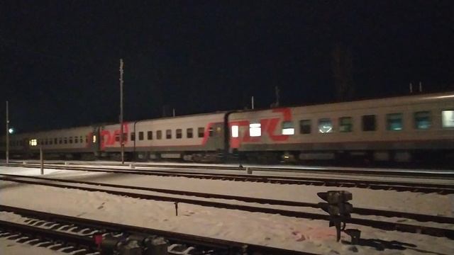 Короткий поезд(7 вагонов) 114С Адлер - Санкт - Петербург ведет ТЭП70БС по 1гл.пути. СКЖД. 29.01.24г. 01:14.