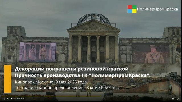 Декорации покрашены резиновой краской Прочность от Группы компаний "ПОЛИМЕРПРОМКРАСКА". Кинопарк Москино. Театрализованное представление "Взятие Рейхстага". 9 мая 2025г.