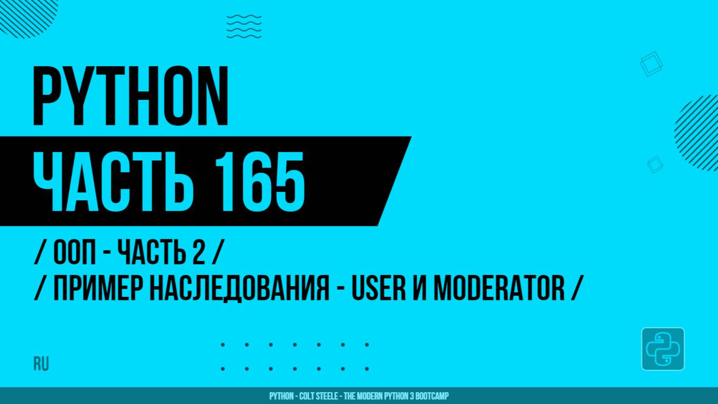 Python - 165 - ООП - Часть 2 - Пример наследования - User и Moderator