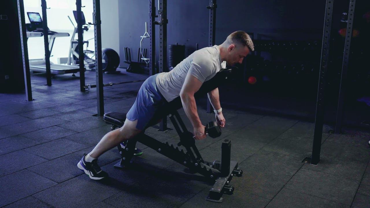 Тяга гантели на наклонной скамье с медленным опусканием/Incline DB single arm row and slow down