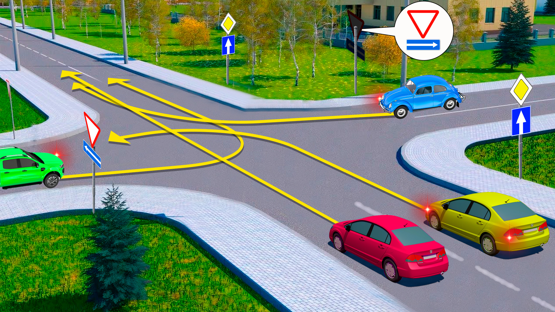 Кто из водителей выбрал запрещенную траекторию для движения?