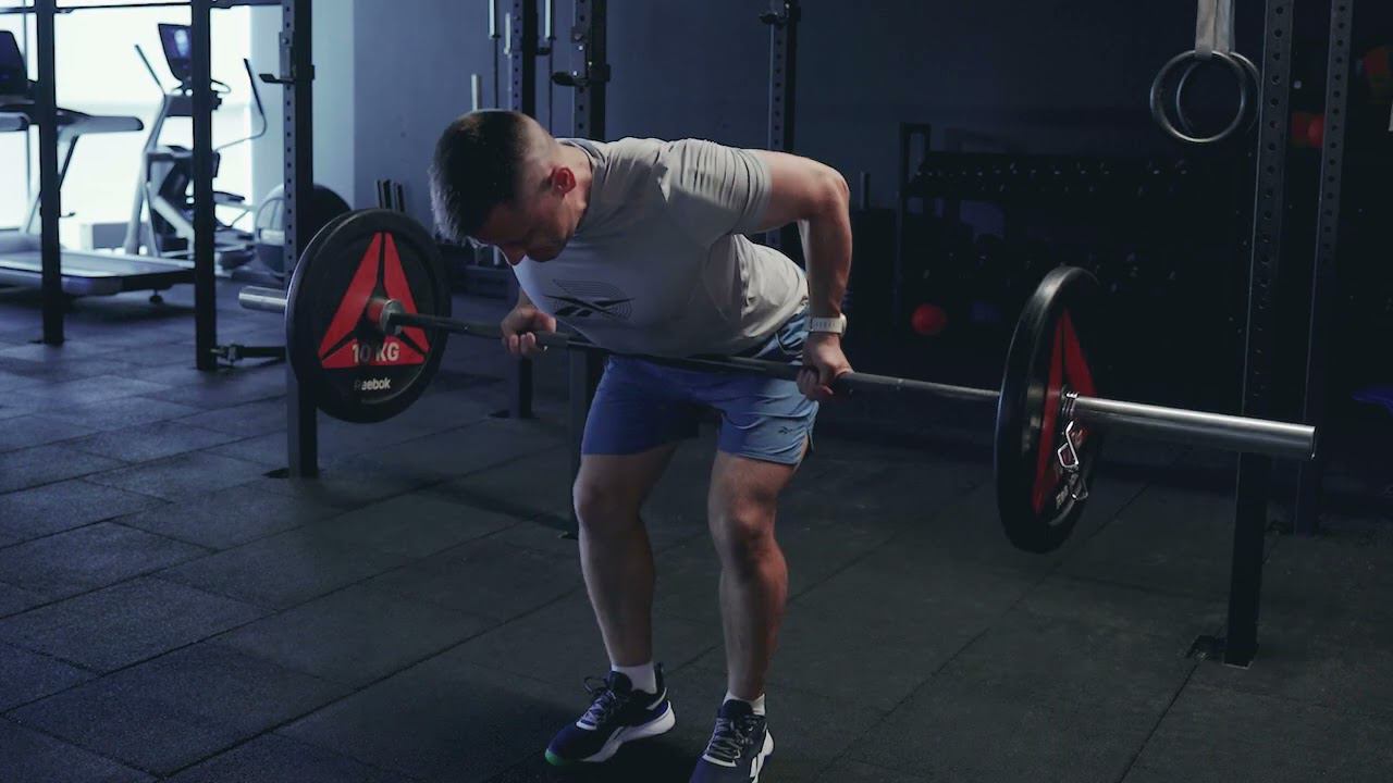 Тяга штанги в наклоне обратным хватом с паузой на полу/ Bent over reverse grip row pause on floor