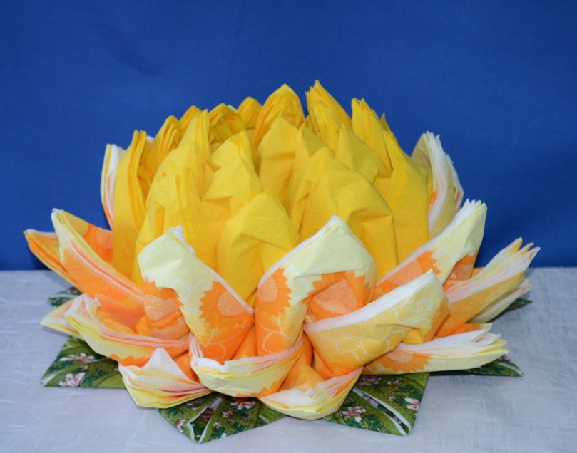Интересный способ как сделать из пачки бумажных салфеток красивый цветок для украшения праздничного стола! Берите цветные салфетки и пробуйте!