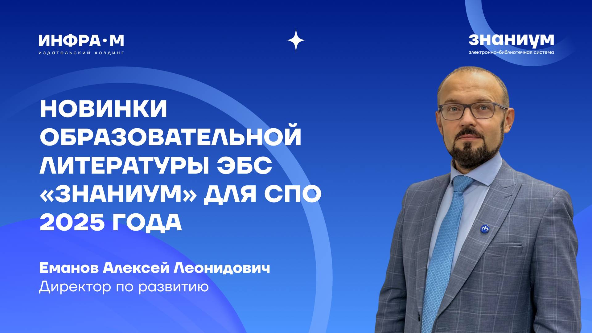 👨🏼💻 Спикер: Еманов Алексей Леонидович, директор по развитию 💡 На вебинаре мы поговорим об актуальных изданиях и новинках в ЭБС «Знаниум»2025 года для СПО и преимуществах электронного комплектования библиотечных фондов. Мы расскажем про: 🔹 формы и виды представления книжного фонда на сайте ЭБС «Знаниум»; 🔹 актуальные электронные новинки СПО по различным направлениям профессиональной подготовки; 🔹 способы оформления заказа на выбранную литературу. 🎬 Смотрите другие наши вебинары ⇢ https://www.youtube.com/playlist?list=PLi2KS7pzBHJVRV.. 🖥 Библиотека электронной литературы ⇢ https://znanium.com/ 📚 Магазин печатных книг ⇢ https://infra-m.ru/ ✅ Подписывайся на наши соцсети и будь в курсе всех новостей и обновлений: Мы в VK ⇢ https://vk.com/inframgroup YouTube ⇢ https://www.youtube.com/@ebs_znanium Telegram-канал ⇢ https://t.me/infra_znanium Мы в Одноклассниках ⇢ https://ok.ru/profile/586134824940