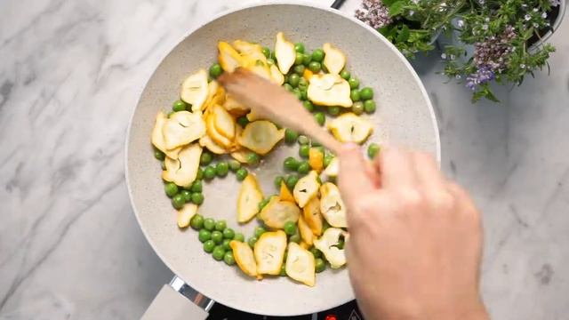 Паста для вегетариацев — выбор редакции!:) Ингредиенты на 2 порции: Макароны «Гнезда Фетучини» – 150 г Кешью жареный – 100 г Горошек зеленый, замороженный – 100 г Патиссоны – 100 г Масло оливковое Extra Virgin – 1 ст.л. Петрушка – пучок Тимьян – по вкусу Чеснок молодой – 2 зубчика Соль морская – 1 ч.л. Перец чёрный горошком мельница – 1 ч.л. Как готовим: 1.Замочите орехи кешью в горячей воде на 5 - 10 минут так, чтобы вода их слегка покрывала. В блендере смешайте орехи с водой, добавьте петрушку, соль, перец и чеснок, пробейте до однородного соуса. 2. Фетучини отварите по инструкции на упаковке. 3. На сковороде разогрейте немного оливкового масла, добавьте зеленый горошек, прогрейте до мягкости, добавьте нарезанные пластинками патиссоны, соль, перец, перемешайте. 4. Добавьте соус из кешью, перемешайте и прогрейте пару минут. Переложите готовые макароны в сковороду и тщательно перемешайте с соусом. Добавьте свежий тимьян и подавайте. Приятного аппетита! ... Наш интернет-магазин: https://vkusvill.ru/goods/ Яндекс.Дзен с рецептами для тех, кто предпочитает читать: https://clck.ru/NwaiW Инстаграм для тех, кто за эстетику: https://www.instagram.com/vkusvill_ru/ #вкусвилл #рецепты #рецептпасты