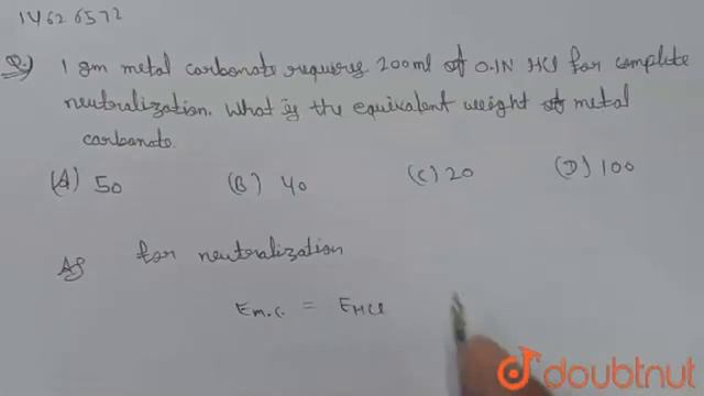 1 gm metal carbonate requires 200 ml of 0.1N HCl for complete neutralization. What is the