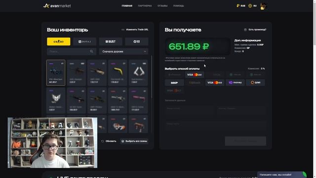 ️ Сервис avan.market: https://bit.ly/avan_market Бонус до 5$ при продаже по ссылке и использовании промокода "GARANT" Всем привет, у микрофона Гарант. Сегодня я расскажу вам о сайте аван маркет, на котором вы можете продать свои скины из КС 2, Дота 2, Раст и ТФ 2 и за 1 минуту вывести деньги на Tron, USDT, Bitcoin и Ethereum в любое время суток. Также вывод средств после продажи скинов из CS и Dota возможен на любую банковскую карту. Связь со мной: VK: https://vk.com/garantcis E-Mail: garantcsgo@yandex.ru Мой сайт - https://csgohouse.ru