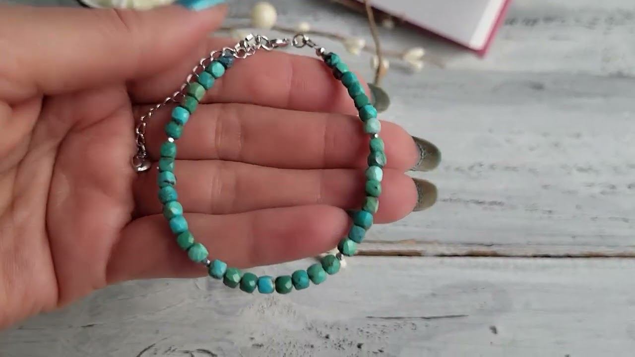 Браслет украшения из натуральных камней. Браслет из бирюзы натуральной (НЕ говлит): бирюза кубик 4 мм. ювелирная огранка, гематит шарик 2 мм. ювелирная огранка, длина 18,5-24 см. (на запястье от 15 см.) купить украшения можно в нашем магазине