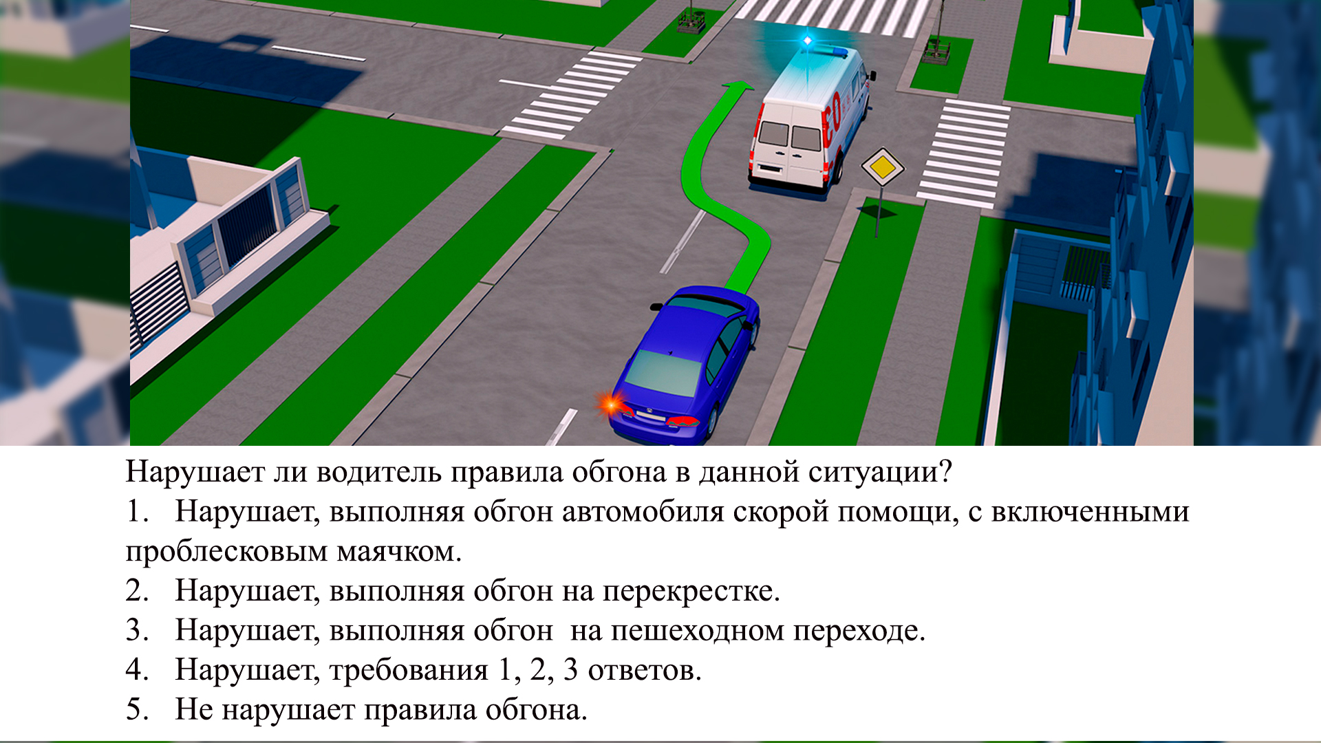 Обгон скорой помощи на перекрестке. Разбор задачи на знание ПДД..