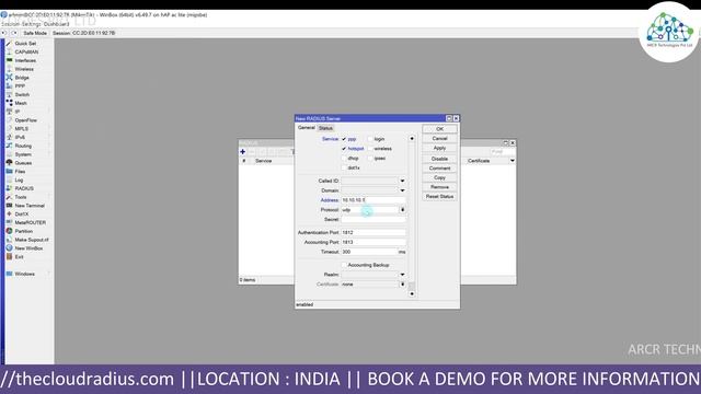 Hotspot Setup with Radius Authentication in MikroTik 00:00 - 01:41 - introduction 01:42 - 06:14- Configuring Hotspot on MikroTik Router 06:15 - 07:29- RADIUS Server Configuration in MikroTik 07:30 - 12:31- Adding MikroTik Router in the CloudRADIUS 12:32 - 13:23- Conclusion 13:24 - 13:51- Thank you and Credits https://www.thecloudradius.com info@arcrtech.com For Sales Contact : +91 73 999 23456