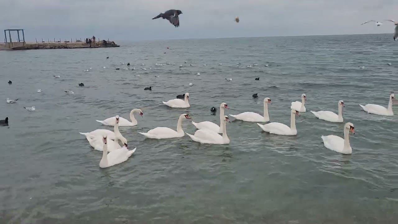 кормление лебедей