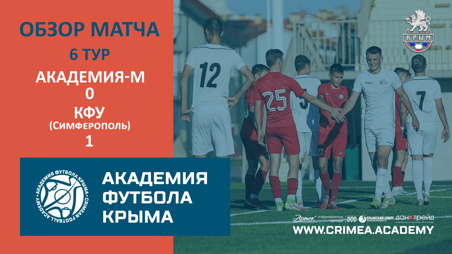 Обзор матча шестого тура Открытого чемпионата Республики Крым по футболу среди мужских любительских команд, сезон 2022/23: Академия футбола Крыма-М - Крымский федеральный университет им. Вернадского (Симферополь). Наш сайт: https://www.crimea.academy/ Академия футбола Крыма – это большая футбольная семья, которая открыта для общественности и готова к взаимному сотрудничеству, обмену опытом и профессиональному общению. Наша цель – подготовка качественных и конкурентоспособных футболистов с учетом современных требований, а также образованных и всесторонне развитых членов современного общества. Наша приоритетная задача – отбор детей, проявивших выдающиеся способности в области футбола для совершенствования их спортивного мастерства. Команды Академии ориентированы на атакующий и зрелищный футбол, в котором удовольствие получает не только сам игрок, но и зритель. При этом интересы команды не должны идти в ущерб задаче воспитания отдельного футболиста. В основе воспитания юных футболистов в нашей Академии лежит принцип – "подготовка игрока, а не команды". #футбол #спорт #СвернёмГоры #football #soccer #sport