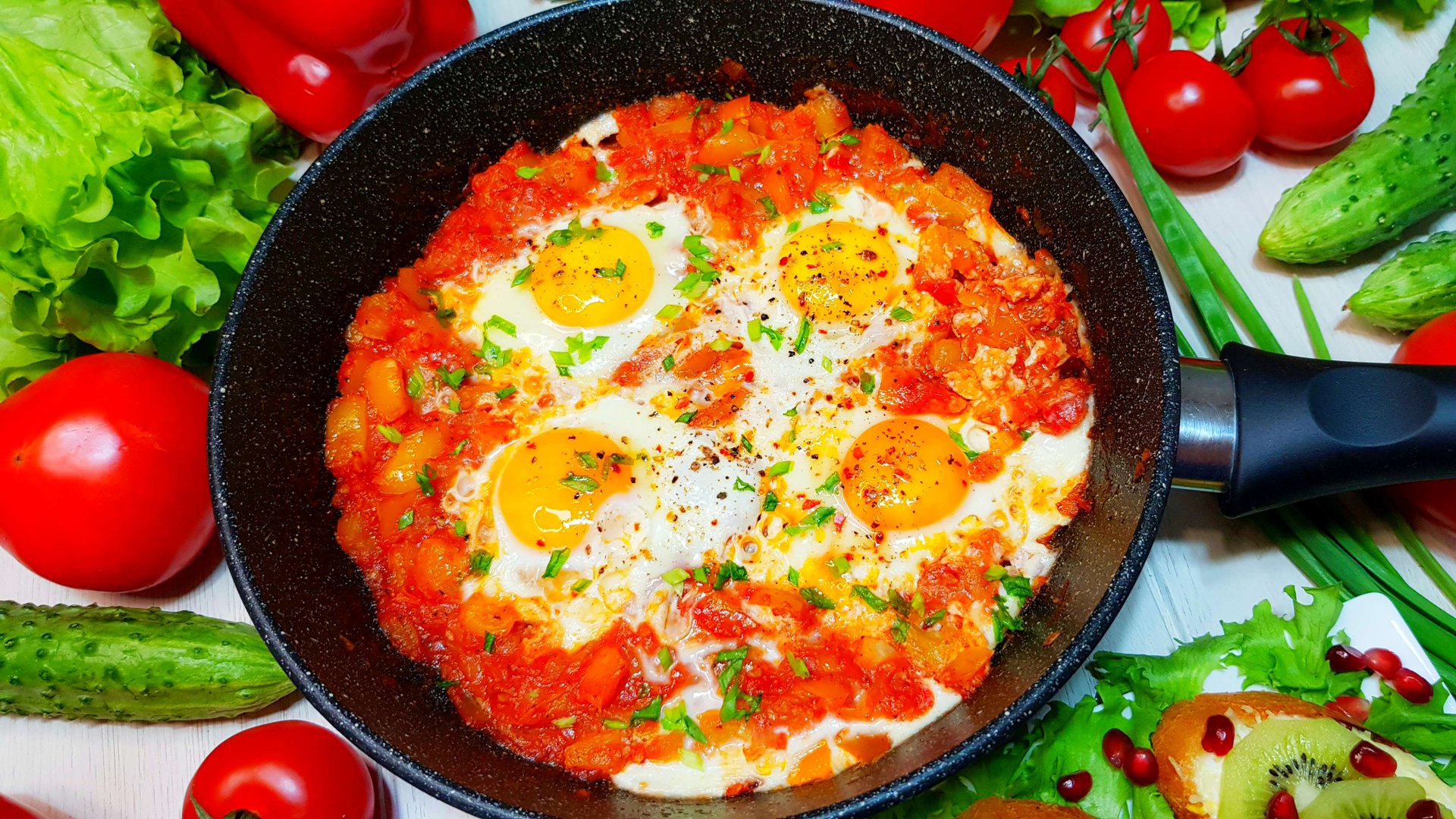 Знаменитая Шакшука – вкусная и сытная яичница на завтрак. Яркое, аппетитное блюдо израильской кухни