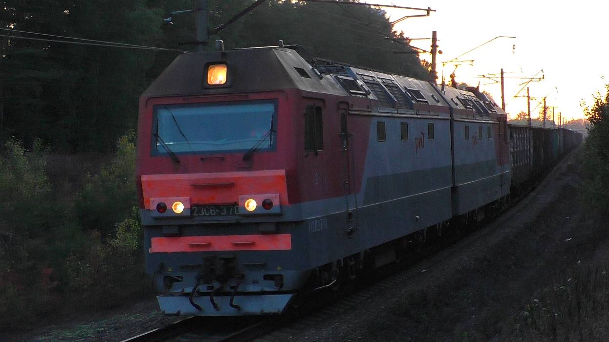 "Ревущая Синара" 2ЭС6-370 с грузовым поездом