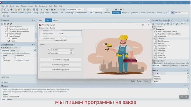 https://kursovik.com/programming/101450432.html Автоматизированная Информационная Система «Журнал бригадира». Среда программирования: Delphi 11. База данных: MS SQL Server 2019. Приобрести исходники(все файлы проекта) данной программы Вы можете, заполнив следующую форму: https://kursovik.com/programming/101450432.html?camefrom=rutube#form Заказать отчёт(описание): https://kursovik.com/programming/101450432.html?camefrom=rutube#pz_need Заказать модификацию: https://kursovik.com/uniform.html?modify=101450432&camefrom=rutube Заказать новую программу: https://kursovik.com/programming_order.html?camefrom=rutube Задать вопрос автору: https://kursovik.com/programming/101450432.html?camefrom=rutube#vopros Наш Телеграм-БОТ для поиска готовых работ по программированию https://t.me/kursovikcom_bot , в нашей базе более 5и тысяч готовых работ, для более эффективного поиска используйте наш Телеграм-БОТ. Список наших готовых работ по программированию: https://kursovik.com/progtopic.html?camefrom=rutube Разработка программ на заказ согласно Вашему заданию: https://kursovik.com/programming_order.html?camefrom=rutube Мы пишем программы практически на всех языках программирования, работаем с различными базами данных, выполняем как мелкие задачки, так и крупные проекты. Разрабатываем и запускаем в работу ЧАТ-БОТы. Обращайтесь - всегда будем рады Вам помочь! Если нужно переписать данную программу на другой язык программирования - обращайтесь - сделаем. Адрес нашего сайта: https://kursovik.com Наши контакты: https://kursovik.com/contacts.html Наша группа ВК: https://vk.com/kursovik (всем подписчикам скидка 5%) Наш Телеграм-канал: https://t.me/kursovik (всем подписчикам скидка 5%) Наш Дзен-канал: https://dzen.ru/kursovik (всем подписчикам скидка 5%) Наш RuTube-канал: https://rutube.ru/channel/41864889 (всем подписчикам скидка 5%) Наш YouTube-канал: https://youtube.com/@kursovik_com (всем подписчикам скидка 5%) (скидки не суммируются :-) #kursovik #курсовик #курсоваяработа #программирование #базыданных #delphi