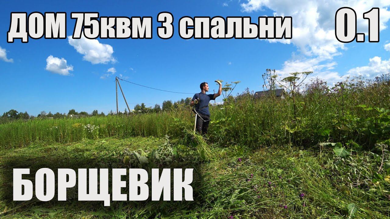 0.1 Каркасный дом 3 спальни 75 квм в один этаж. Подготовка участка к стройке. Борщевик. Начинаем новый плейлист на канале. Первое, что будет сделано на участке - выкошена трава, а она наросла совсем уж не маленькая, предыдущие владельцы выкосом не занимались, поэтому запущенность была уж слишком сильной.