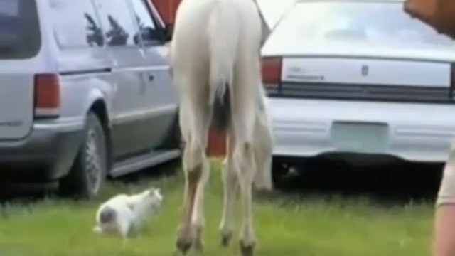 Лошадь преследует котенка