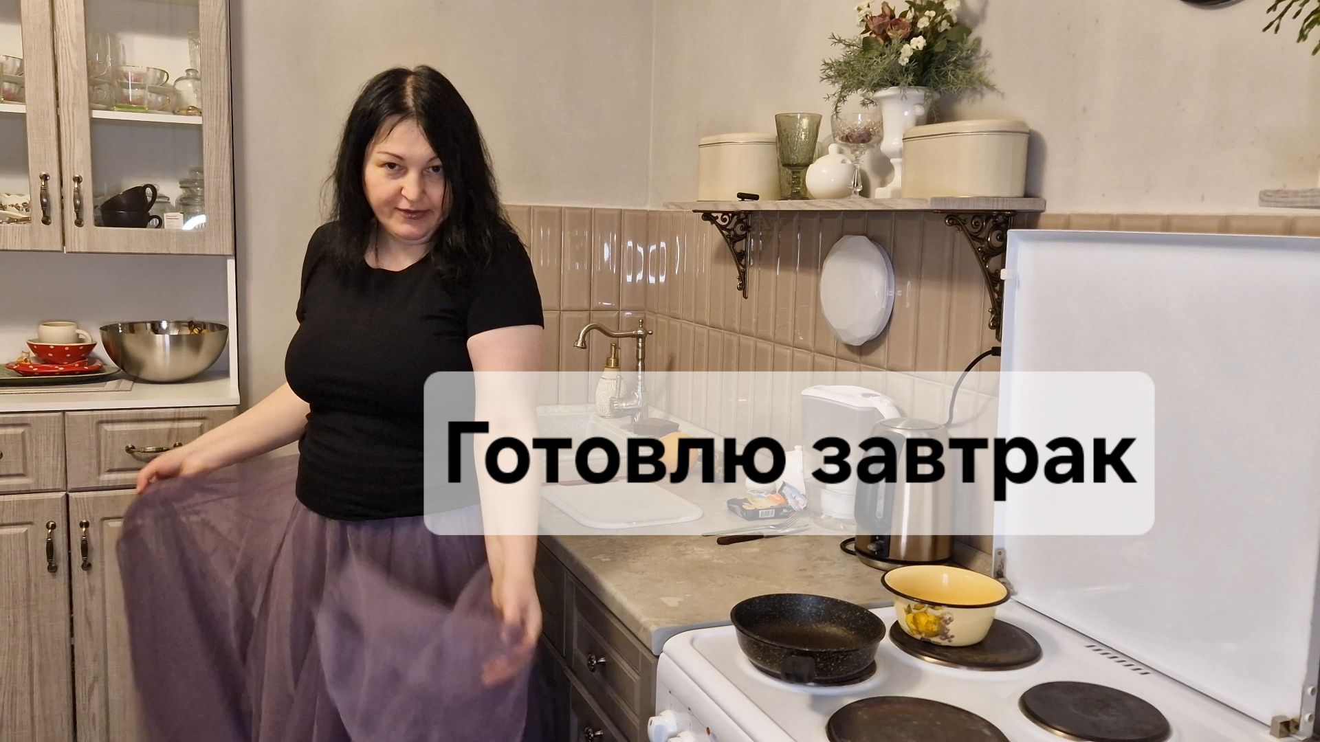 Готовлю завтрак в красивой юбке😀💃