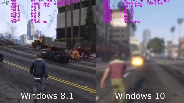 GTA 5 (PC) - R9 280 + FX 6300 (Driver AMD: 15.7.1) - Windows 8.1 vs Windows 10
