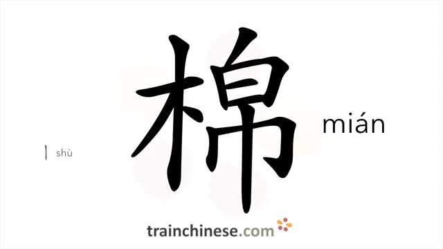 棉 (mián) cotton; wadded