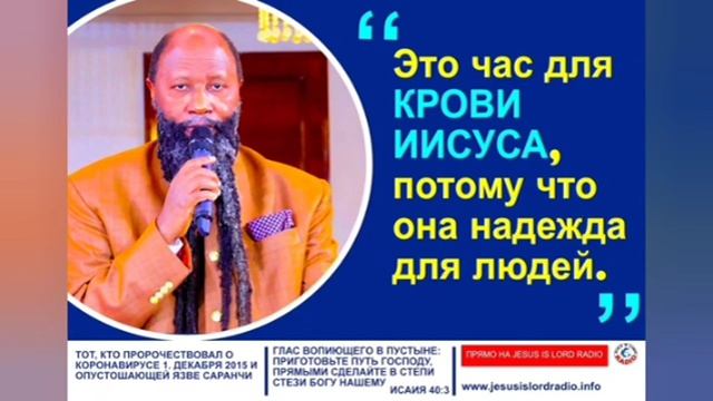 ОБЕЩАННЫЙ БОЖИЙ ПРОРОК ПОСЛЕДНЕГО ВРЕМЕНИ ДР. ДАВИД ОВУОР -------------------------------------- ГОСПОДЬ ПОСЛАЛ СВОИХ ВЕЛИКИХ ПРОРОКОВ ГОСПОДНИХ К ЭТОМУ МИРУ Чтобы нам принести правду, истинное определение и значение благодати, чтобы пробудить, восстановить и поднять церковь от большого падения , которое вошло в церковь. И чтобы нас вразумить, что время истекло и мы должны приготовиться в святости и праведности, потому что МЕССИЯ грядет! ГОСПОДЬ ГРЯДЁТ ЗА СВОЕЙ ЦЕРКОВЬЮ. ГОСПОДЬ ГОТОВИТ ЦЕРКОВЬ ЧЕРЕЗ ПРОРОКОВ БОЖИИХ К ВОСХИЩЕНИЮ КОТОРОЕ СКОРО, СКОРО, ОЧЕНЬ СКОРО ПРОИЗОЙДЕТ! • Старайтесь иметь мир со всеми и святость, без которой никто не увидит Господа. Евреям, 12:14 • И не войдет в него ничто нечистое и никто преданный мерзости и лжи, а только те, которые написаны у Агнца в книге жизни. Откр 21:27 • Побеждающий облечется в белые одежды; и не изглажу имени его из книги жизни, и исповедаю имя его пред Отцем Моим и пред Ангелами Его. Откровение, 3:5 • И кто не был записан в книге жизни, тот был брошен в озеро огненное. Откр 20:15