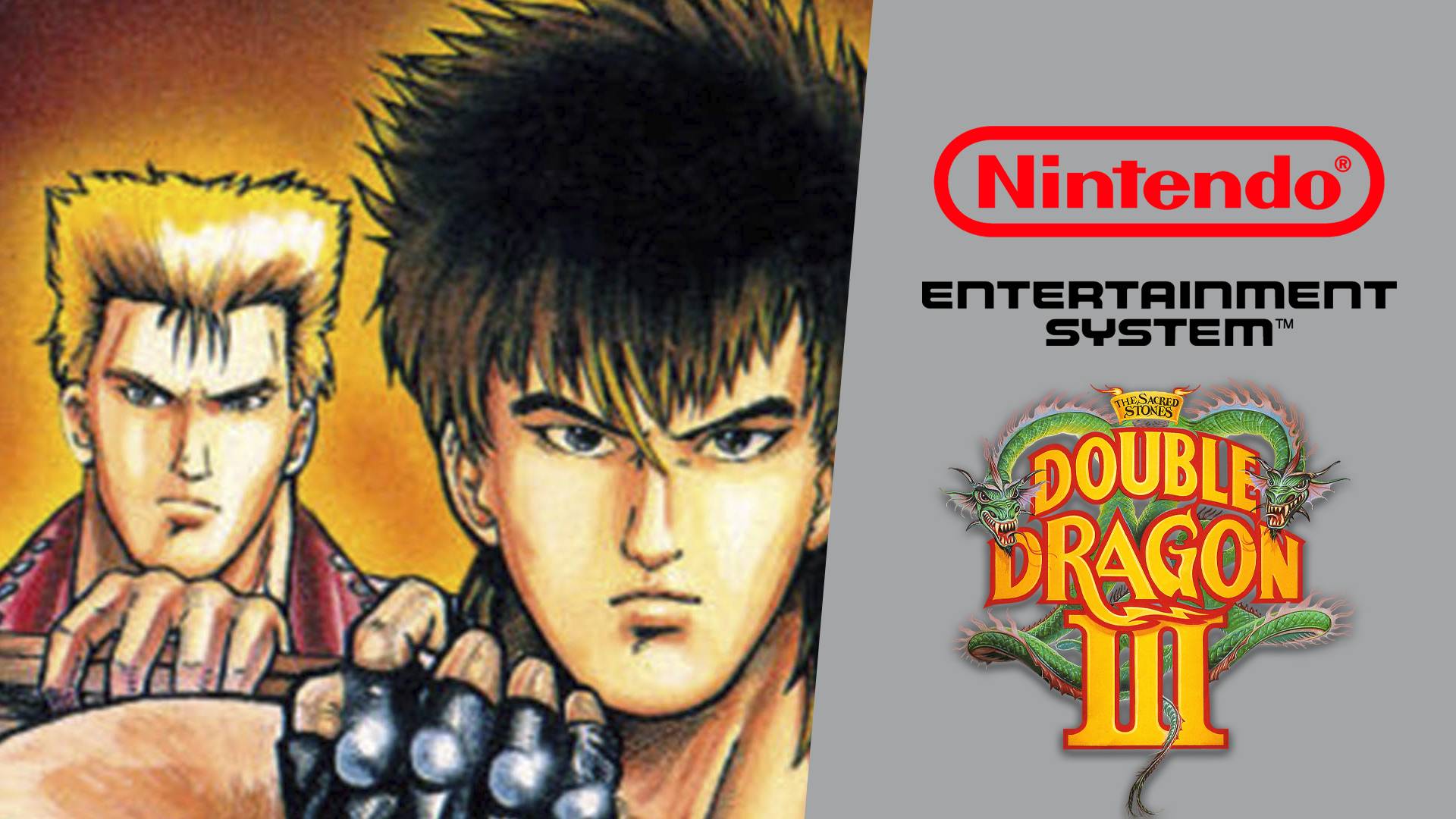 Double Dragon III: The Sacred Stones, выпущенный в Японии под названием Double Dragon III: The Rosetta Stone, представляет собой игру с боковой прокруткой, созданную для Nintendo Entertainment System в 1991 году. Это была третья игра Double Dragon для NES, разработанная Technos Japan Corp. и изданная в Северной Америке и Европе Acclaim Entertainment. Хотя и слабо основанный на одноименном фильме. Сюжет Спустя год после падения Воинов Тени новый враг угрожает Билли и Джимми Ли, поскольку Марион похищена таинственной организацией. Единственный свидетель ее похищения, Бретт, умирает прежде, чем смог раскрыть истинную личность их лидера. Гадалка по имени Хируко сообщает братьям Ли, что похитители Марион ищут три Священных Камня Силы, которые были разбросаны по всему миру, и что единственный способ спасти ее - раздобыть их до того, как это сделают похитители. После первой битвы в Соединенных Штатах братья Ли отправляются в мировое путешествие в поисках камней, которое приводит их в Китай, Японию и Италию, где они сталкиваются с многочисленными грозными бойцами в каждой стране. Финальная сцена разворачивается в Египте, где братья Ли раскрывают правду об исчезновении Марион и сталкиваются лицом к лицу с истинным лидером врага. Игровой процесс В Double Dragon III может играть один или два игрока одновременно, с режимом "A", в котором оба игрока не могут причинить друг другу вреда, и режимом "B", который допускает дружественный огонь. Как и его аркадный аналог, версия Double Dragon III для NES возвращается к использованию кнопок punch и kick в качестве стандартной схемы управления, а также добавлена возможность совершать рывок, дважды нажав d-pad влево или вправо. Остальная боевая система немного ближе к предыдущим играм для NES, сохранив прием захвата за волосы, который был удален в аркадной версии (хотя бросок плечом исчез, а также летящий удар коленом и гиперприводящий апперкот из версии Double Dragon II: The Revenge для NES). Новые приемы в этой версии включают удар в прыжке с разбега (который может стать ударом в прыжке треугольником, если выполняется на стене) и сальто в воздухе, которое позволяет игроку отбрасывать врагов, прыгая на них. В режиме для 2 игроков, когда оба игрока управляют каждым братом Ли, они могут выполнить двойной удар циклоном с вращением и удар треугольным прыжком. В игре отсутствует традиционная система жизней из предыдущих частей NES, а также магазины предметов из аркадной версии. Вместо этого игрок получает возможность управлять двумя новыми бойцами в дополнение к братьям Ли по мере прохождения игры. Эти дополнительные бойцы присоединяются к отряду игрока после того, как они потерпят поражение в качестве вражеских боссов. Чин Сэймэй (陳 清明), китайский мастер боевых искусств, присоединяется в конце миссии 2, в то время как Ягю Ранзо (柳生 乱蔵, Ягю Ранзо), глава клана ниндзя, появляется в конце миссии 3. Нажав кнопку выбора в любой момент (при условии, что персонаж игрока не находится в середине анимации атаки или не получает урон), игрок может получить доступ к экрану выбора персонажа и переключаться между любым из доступных бойцов. У каждого бойца есть свои собственные боевые приемы, очки здоровья и скорость, что делает их подходящими для различных ситуаций. Когда игрок теряет бойца, он автоматически переключается на следующего доступного персонажа до тех пор, пока вся партия не будет побеждена. Обычно игра заканчивается, когда в