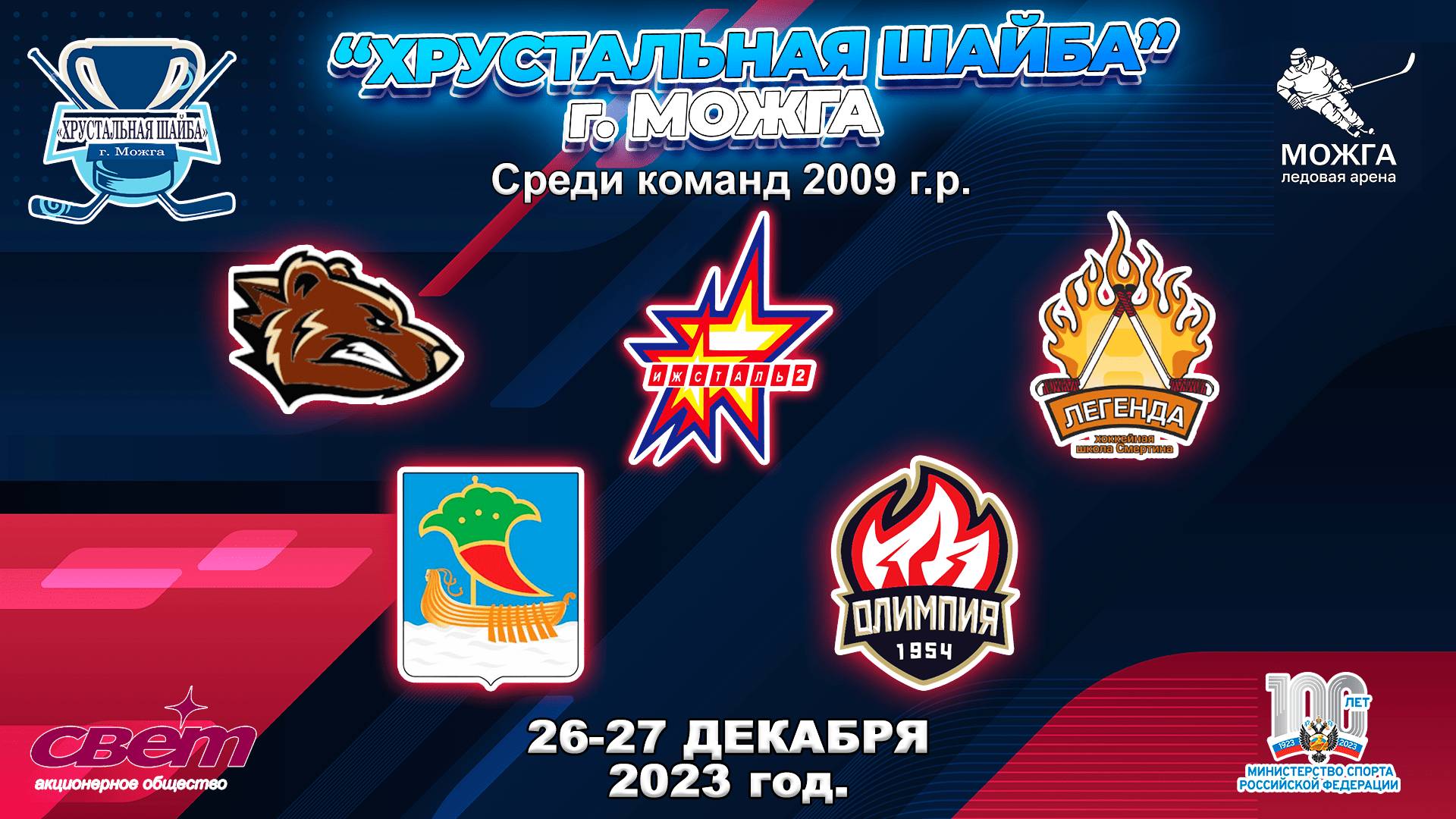 Участники: юноши 2009 г.р. Даты проведения: 26-27.12.2023 год. Статистика: https://r-hockey.ru/stat/crystalpuck/2024/23872/teams Команды https://r-hockey.ru/stat/crystalpuck/2024/23872/calendar#filter- Календарь https://r-hockey.ru/stat/crystalpuck/2024/23872/table Таблица https://r-hockey.ru/stat/crystalpuck/2024/23872/result Результаты https://r-hockey.ru/stat/crystalpuck/2024/23872/player#filter-type:all Лучшие https://r-hockey.ru/stat/crystalpuck/2024/23872/video Трансляции игр