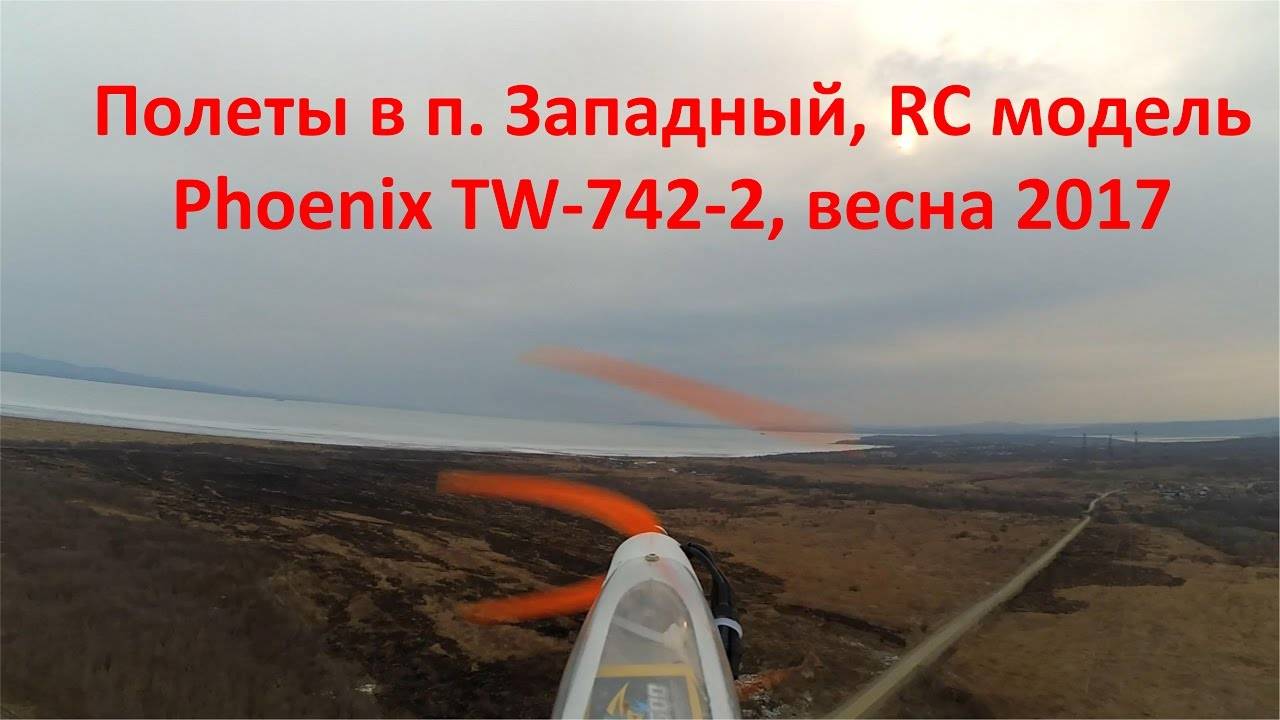 Полеты на радиоуправляемой модели самолета в п. Западный, RC модель Phoenix TW-742-2, весна 2017 г.